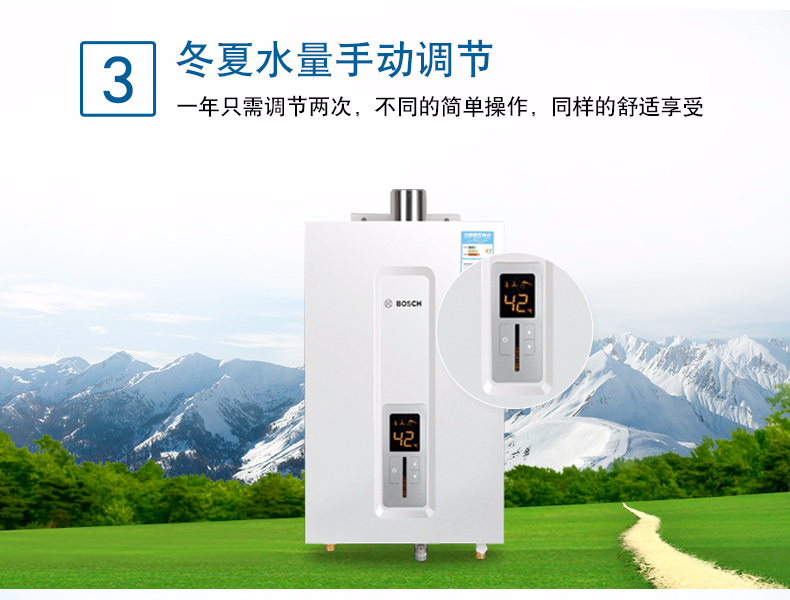 智能恒溫控制系統,根據冬夏季節對水溫的不同要求,來調節水量,在最經濟、環保的能耗下,讓您舒適沐浴。